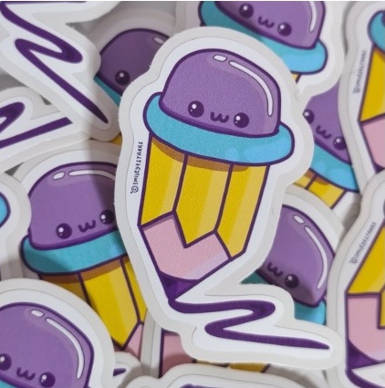 Cute kawaii pencil with scratches sticker, perfect for journals and planners. Printed on matte vinyl, locally made and illustrated by Smiley1starrs