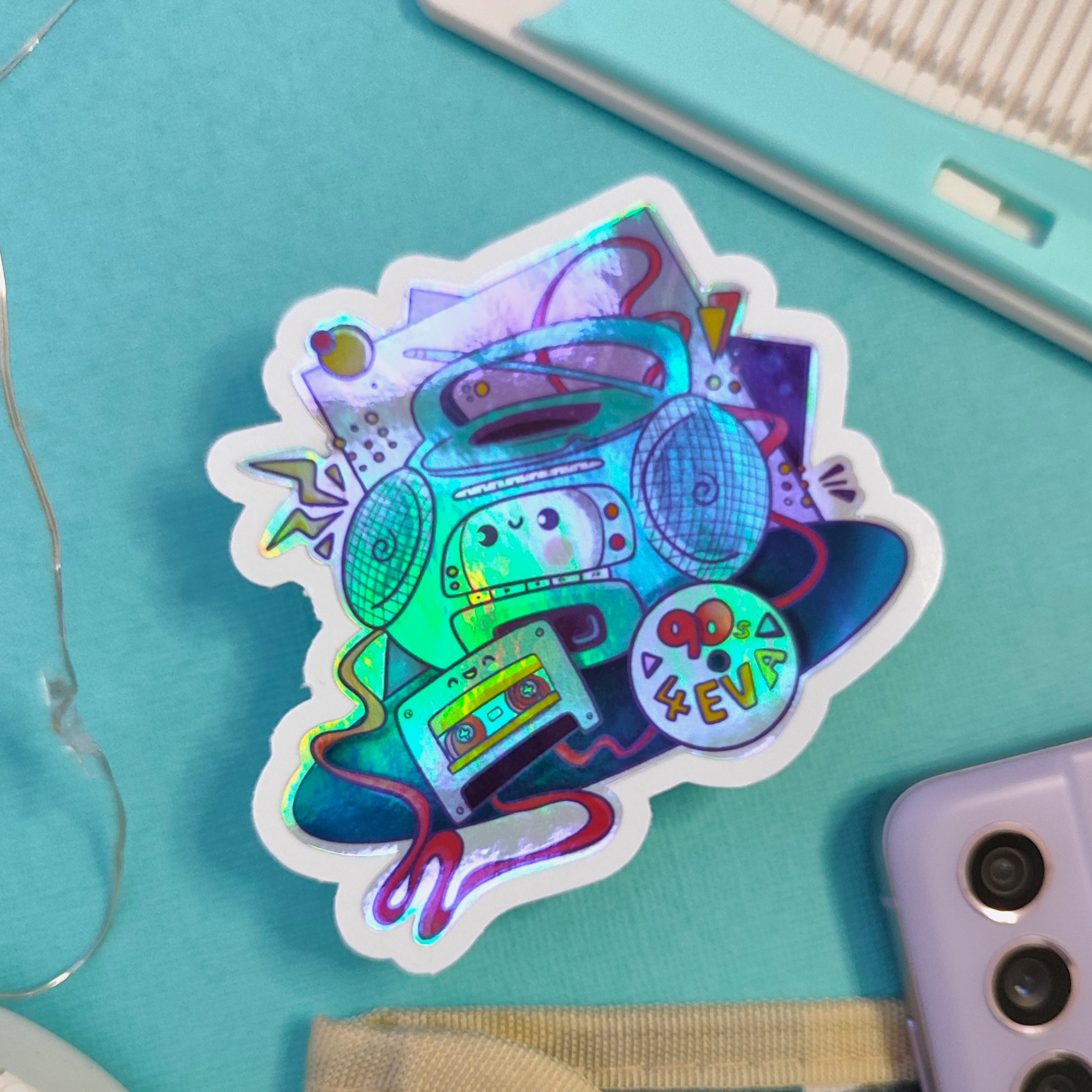 Holographic collectible die cut sticker – 90s life series: Booming box