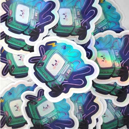 90s Life Series – Tv Tube and VCR, Printed on Holographic sticker paper printed with eco-solvent ink and are liquid laminated for extra protection against scratches and the elements.