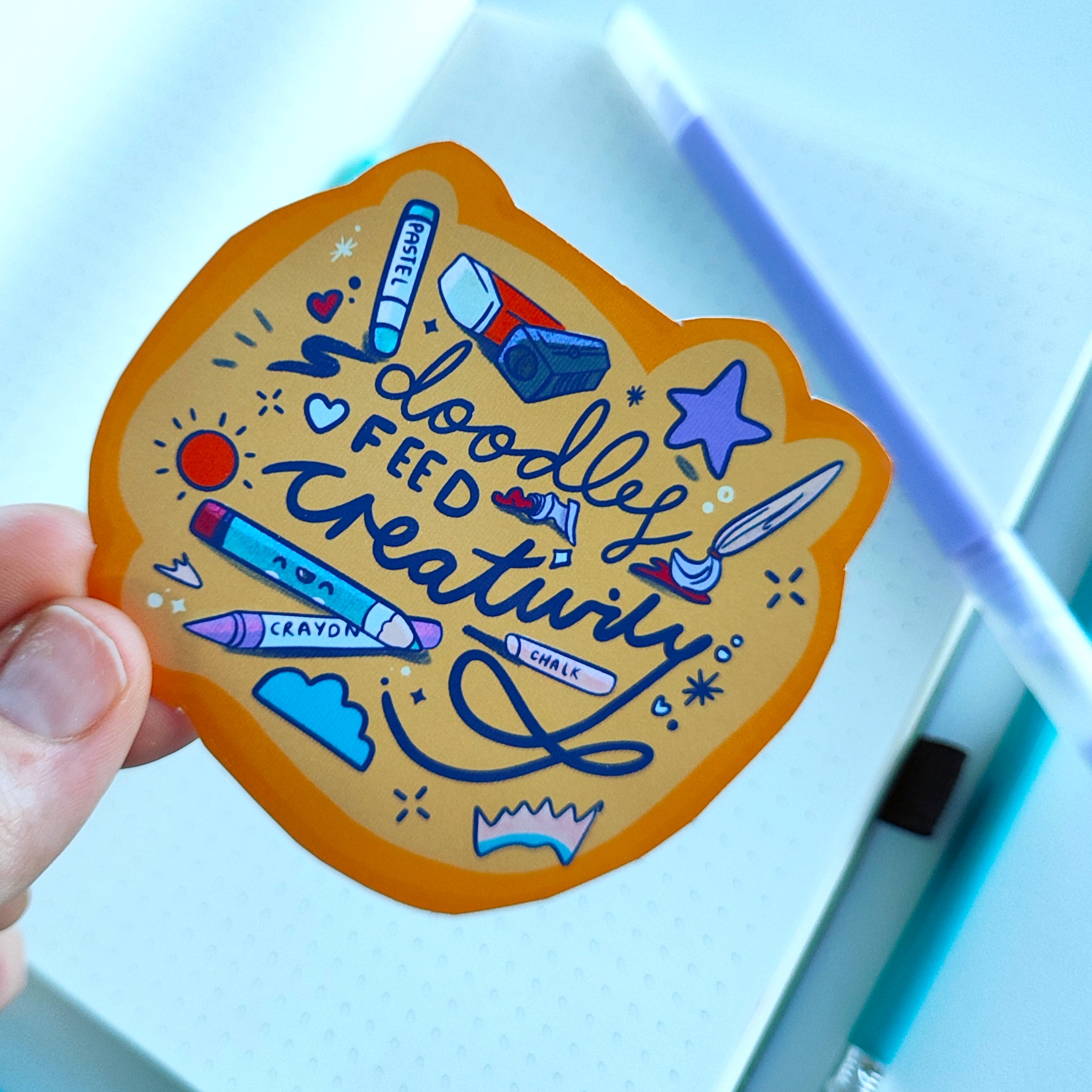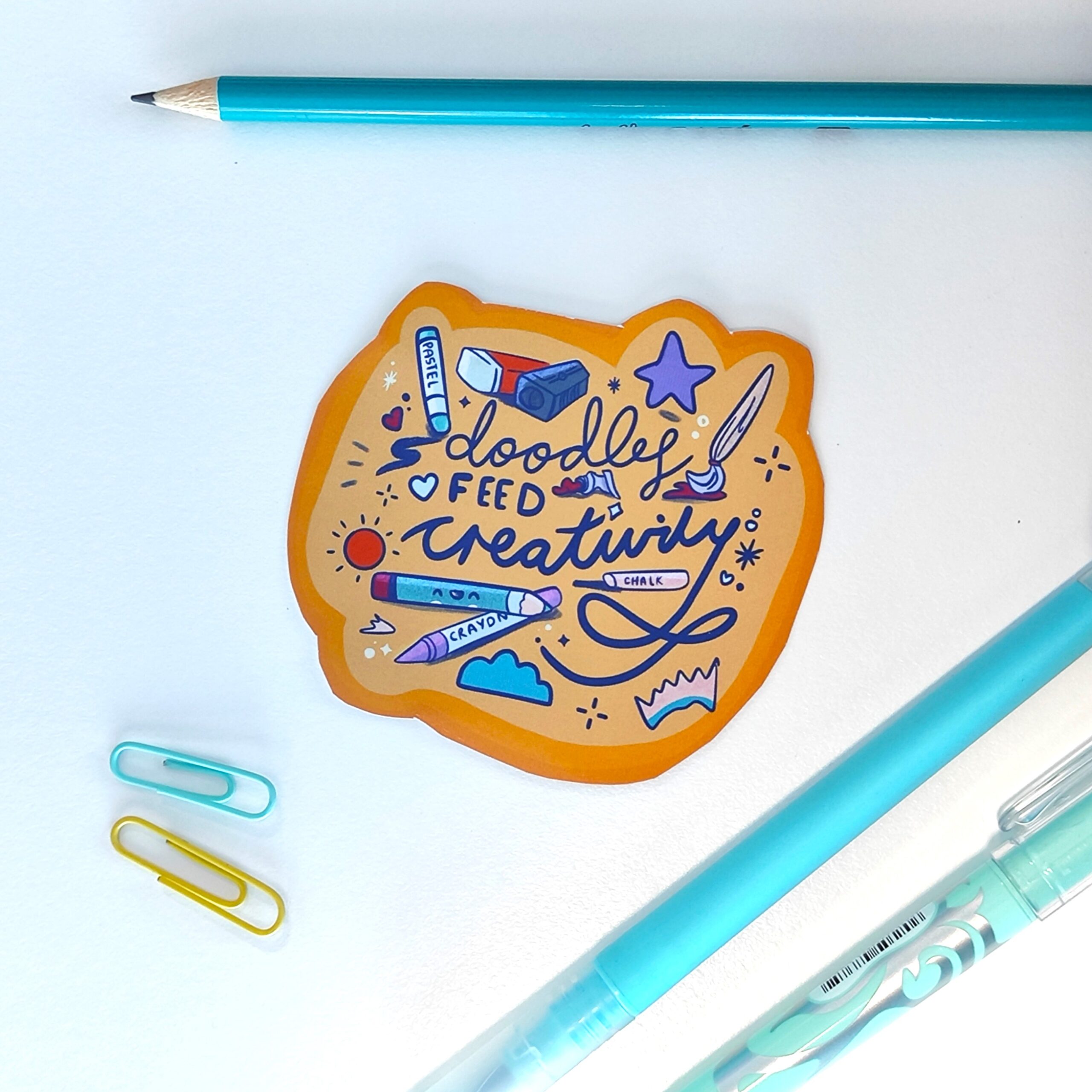 Doodles feed creativity die cut novelty sticker printed on 135 gsm glossy white sticker paper
