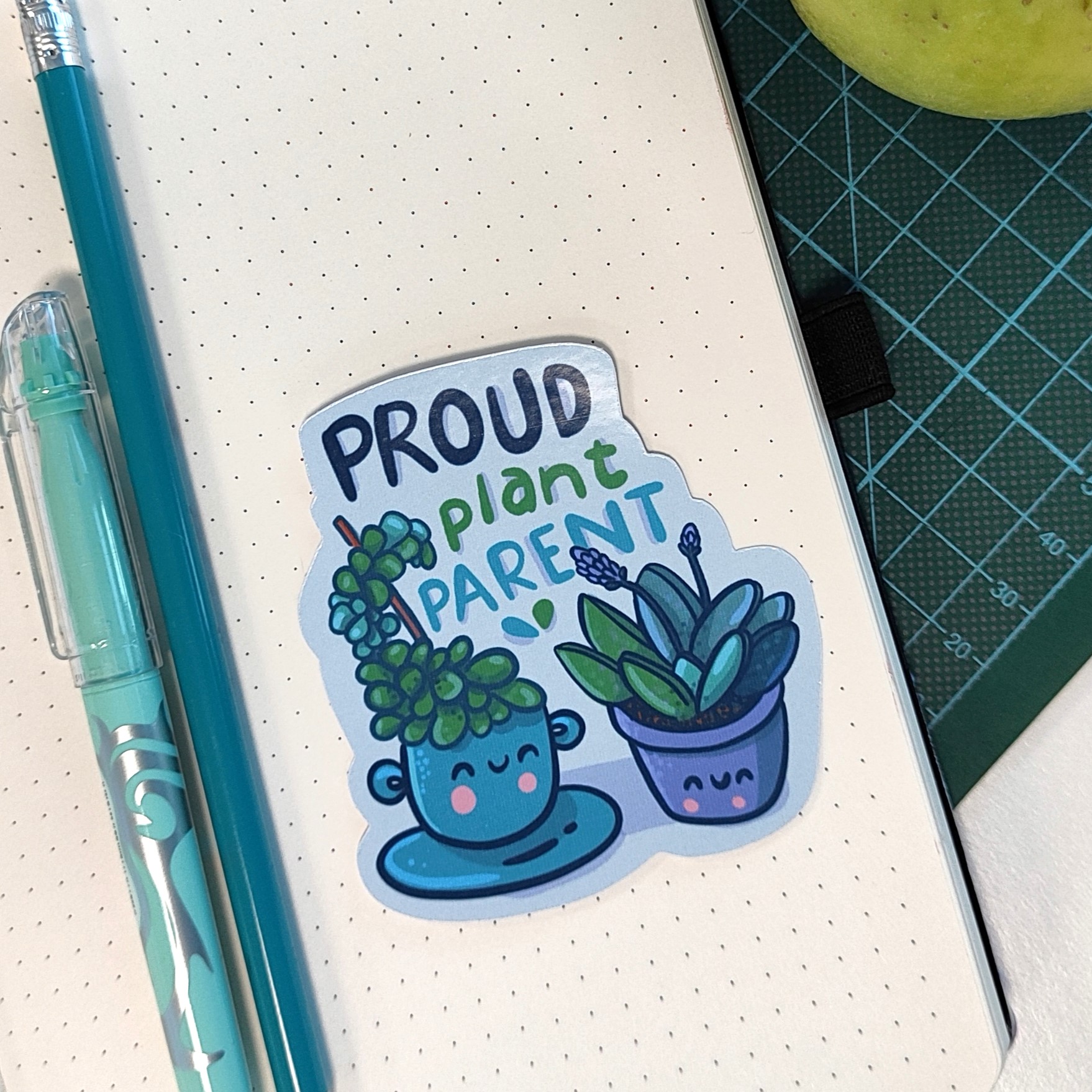 Proud plant parent die cut novelty sticker printed on 135 gsm glossy white sticker paper