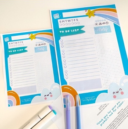 Design includes to do list bullets, space for notes as well as mood and weather tracker