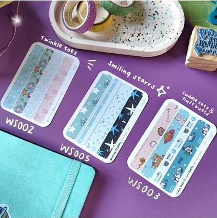 | Washi Sheet designs | Cuddle cats and fluff butts, Smiling Starrs, Twinkle Toes |